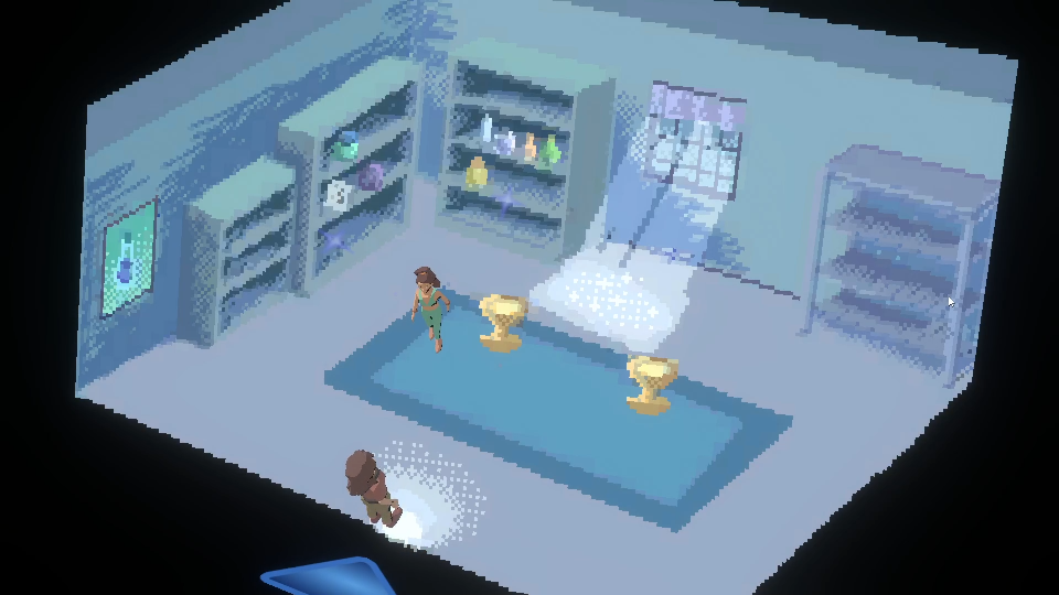 I recently made a small demo for an essay. I know it’s complicated, but it came as good as I could have hoped for. It kind of mixes pixel art with cell-shaded animated characters, a bit reminiscent of 90’s adventure games. I had a playtester give me a lovely compliment, saying it reminded him of the classic PC game Alone in the Dark, before I even mentioned it. It made my day to hear that, thank you, Alex. And yes, it totally was one of my inspirations.